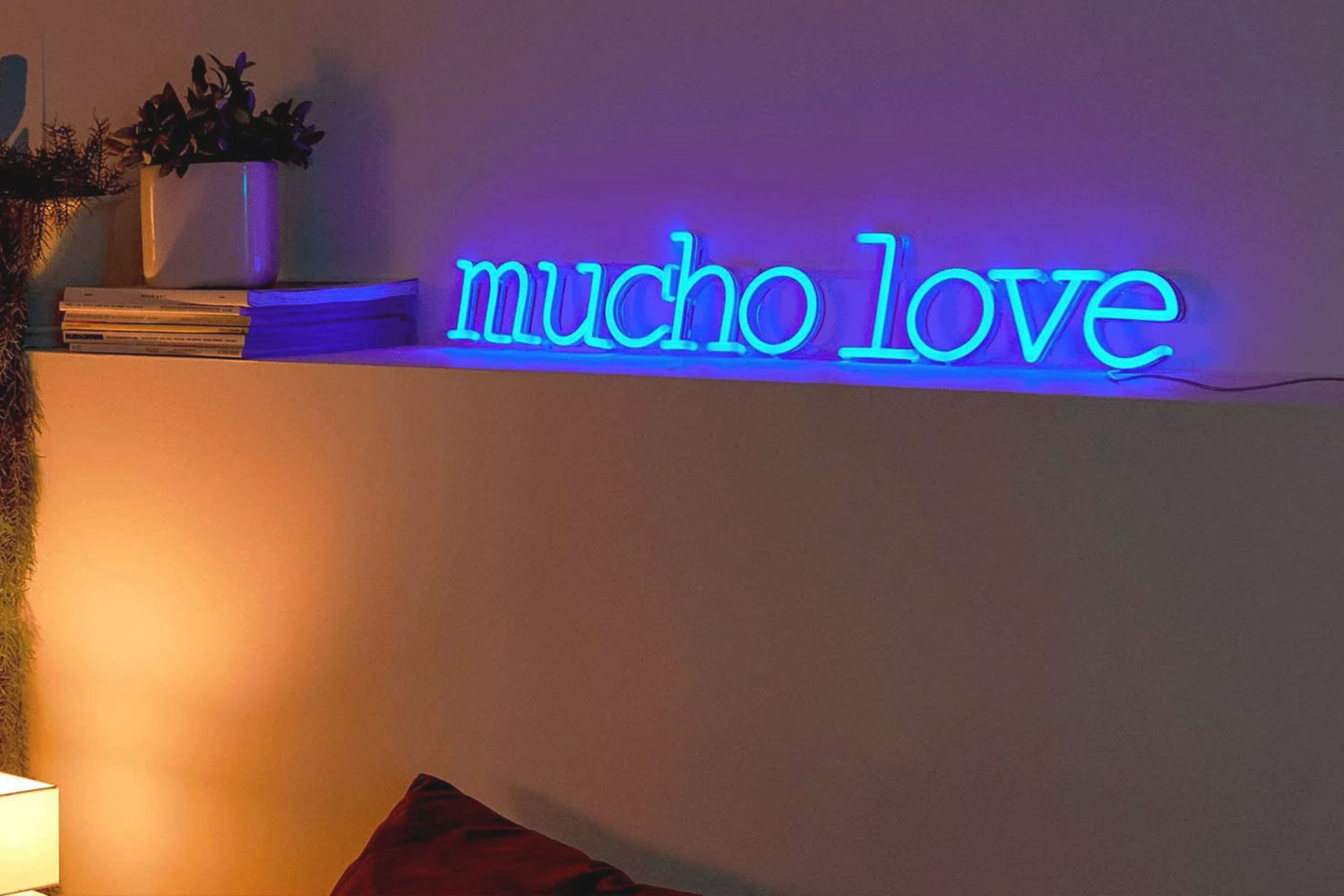 Néons typographiques pour décorer salons, chambres et espaces créatifs.